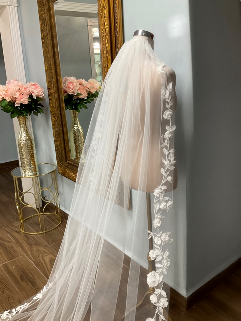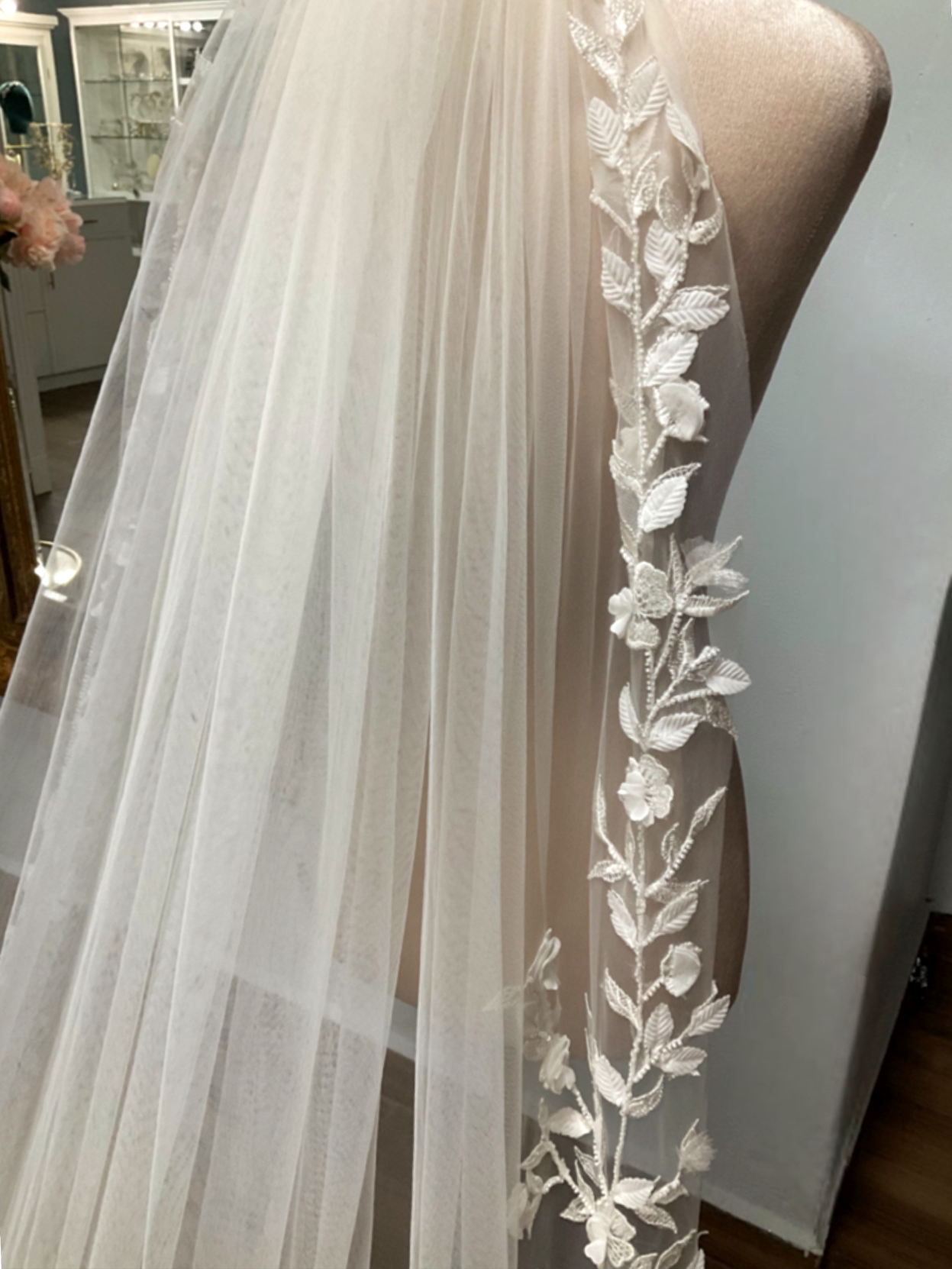 Si quieres un velo personalizado en el encaje de tu vestido, contáctanos por Instagram.