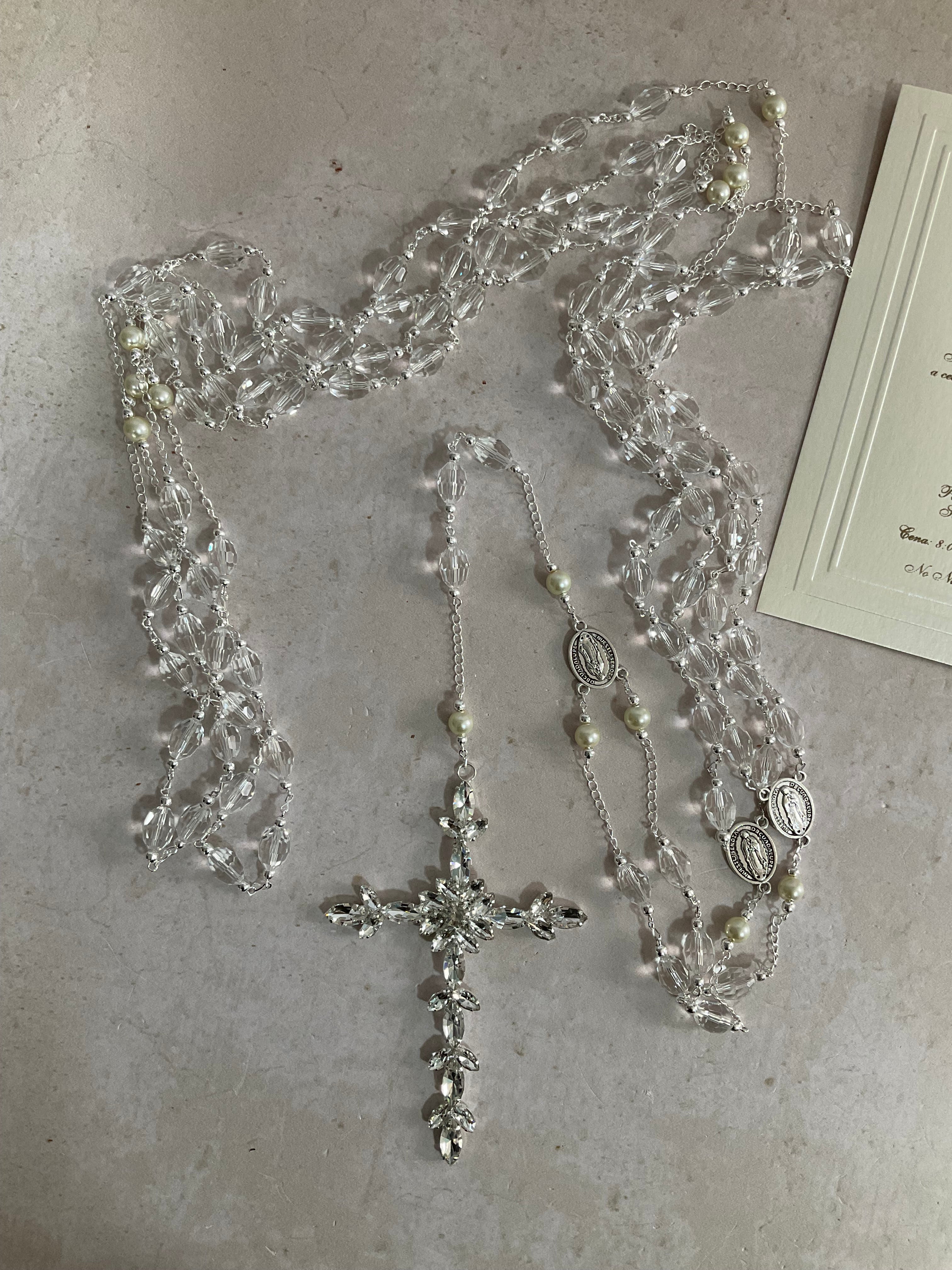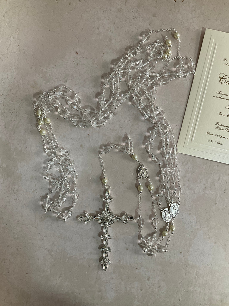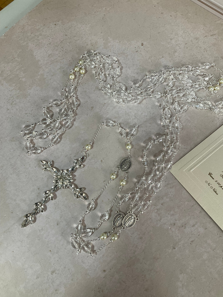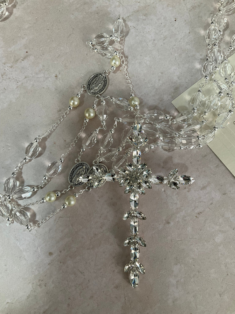 Lazo Italia en cristal cortado baño en Plata, con una cruz en zirconias.