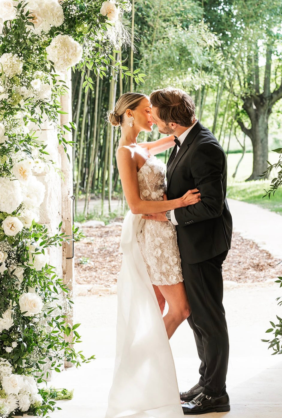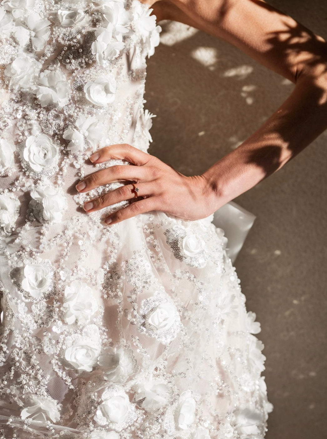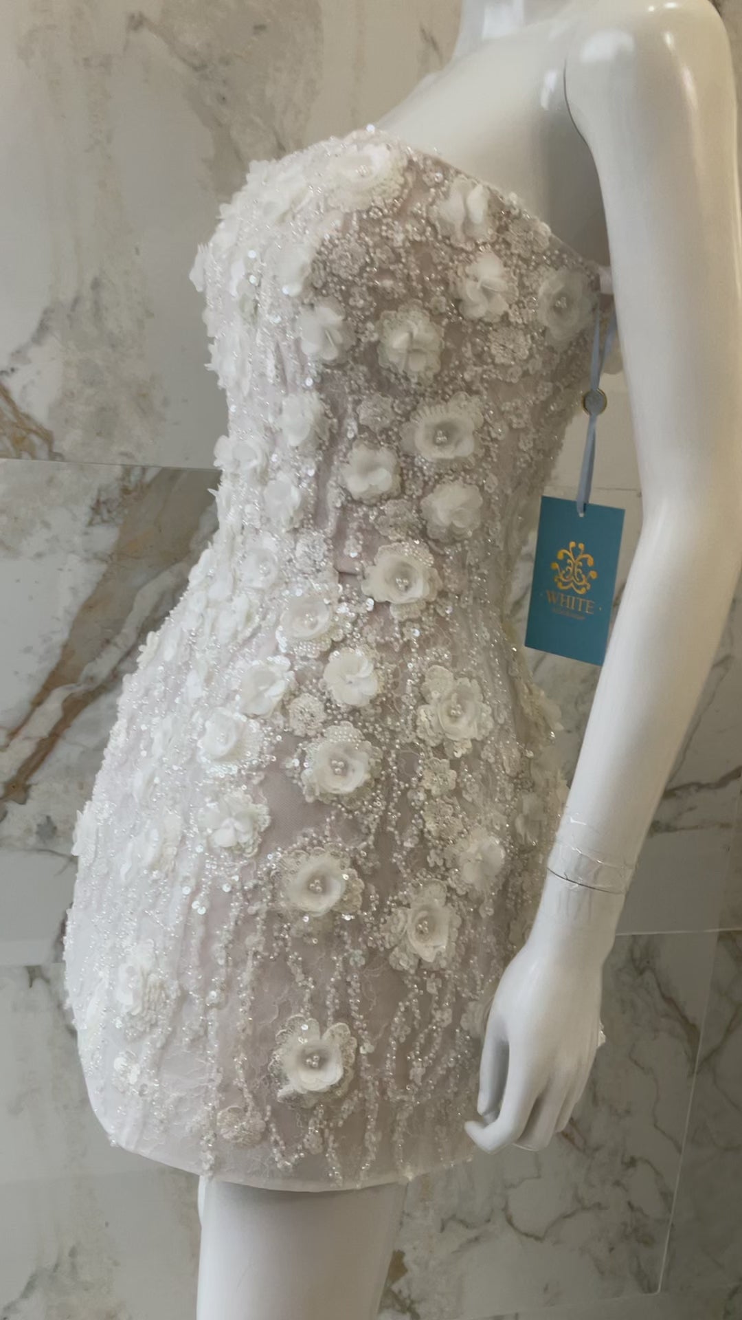 Delicado y sofisticado Mini Dress elaborado en encaje bordado en flores 3D que crean un efecto romántico y moderno.