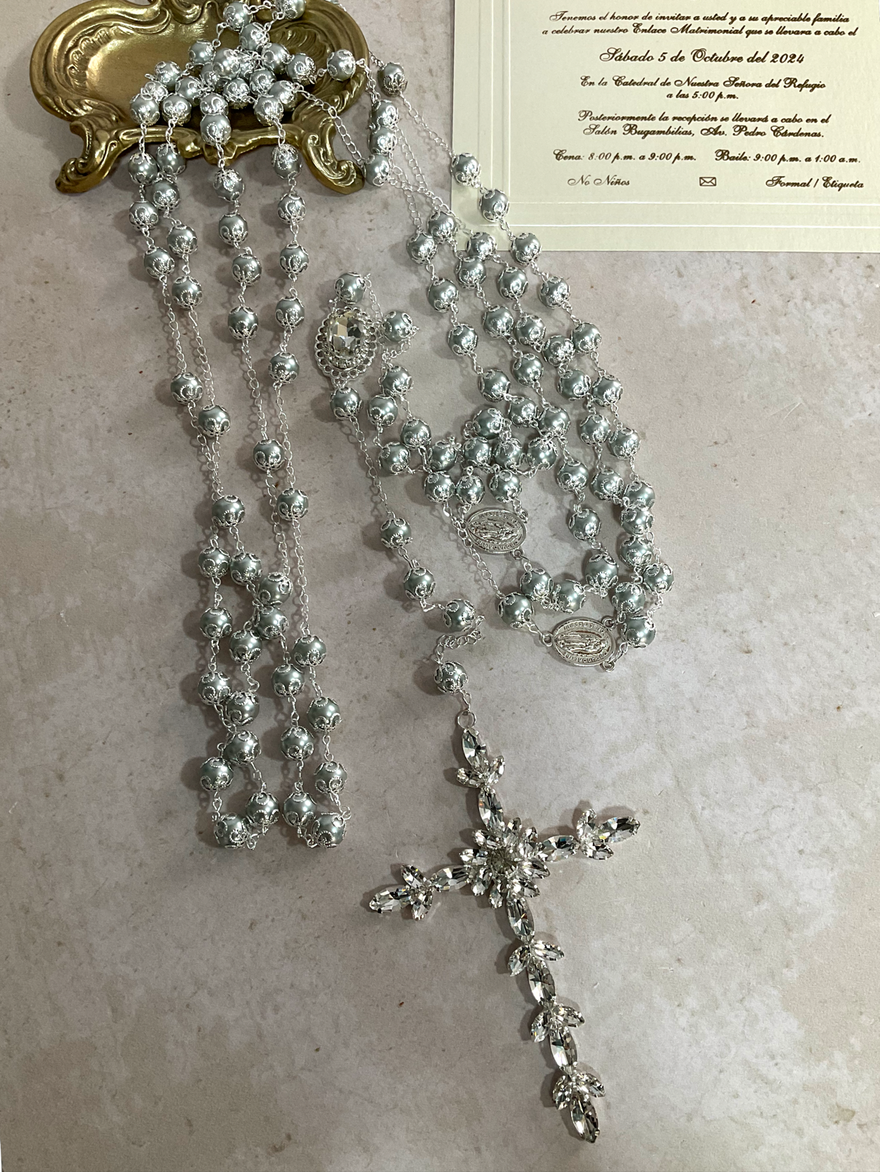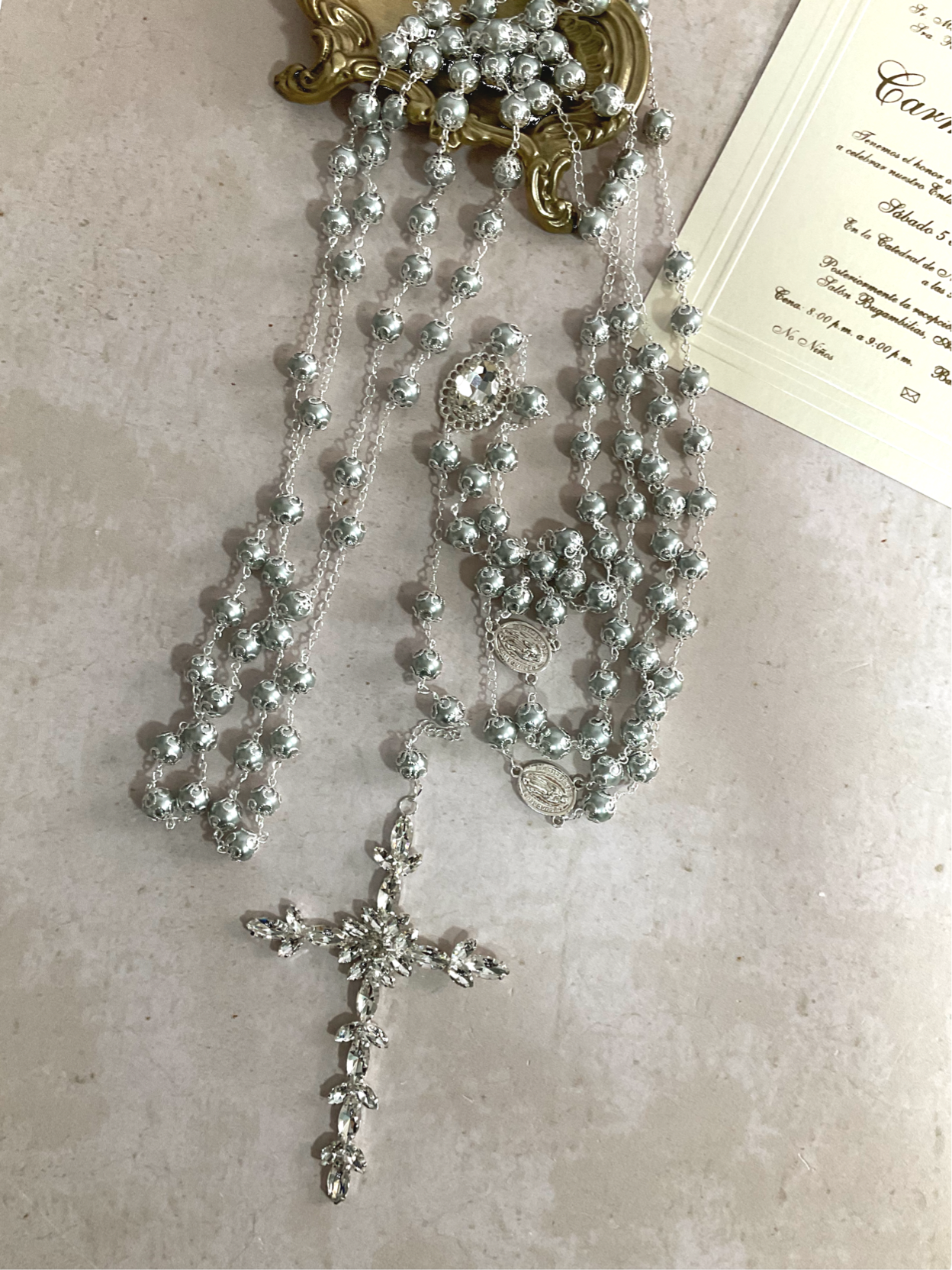 Lazo PERLA SILVER en cristal cortado baño en Plata, con una cruz en zirconias.