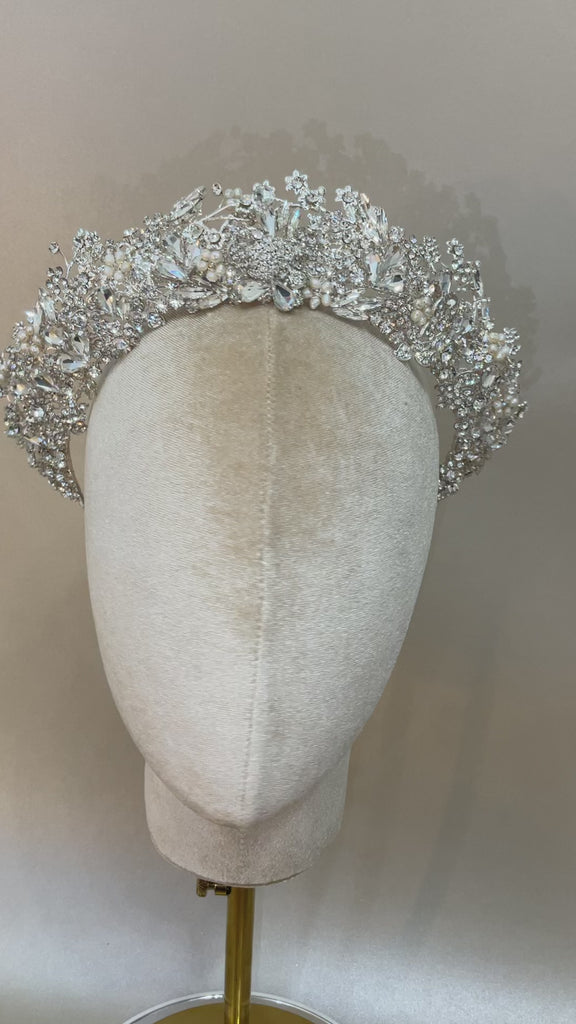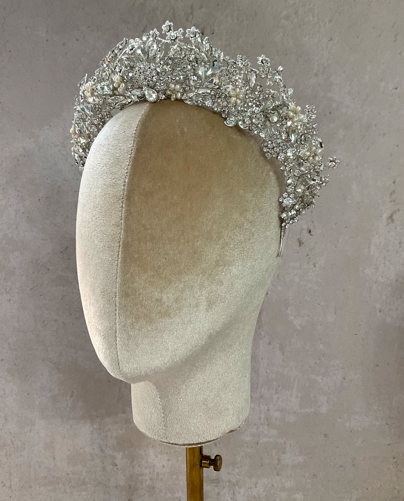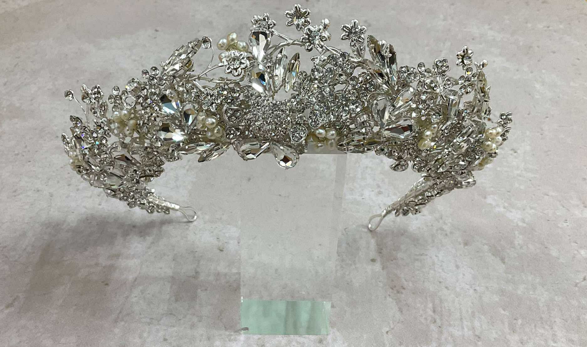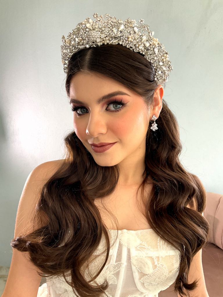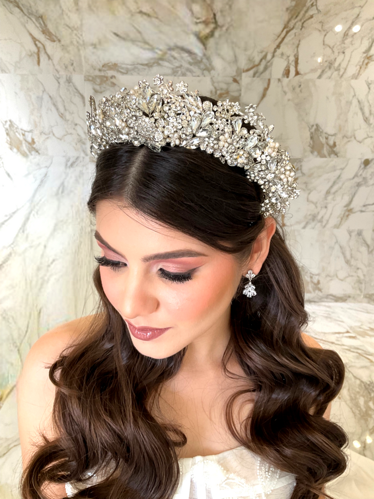 Una pieza majestuosa que realza tu Bridal look elaborada en cristales austriacos y perlas incrustadas, diseñada para las Brides que quieren un look lleno de elegancia y glamour!