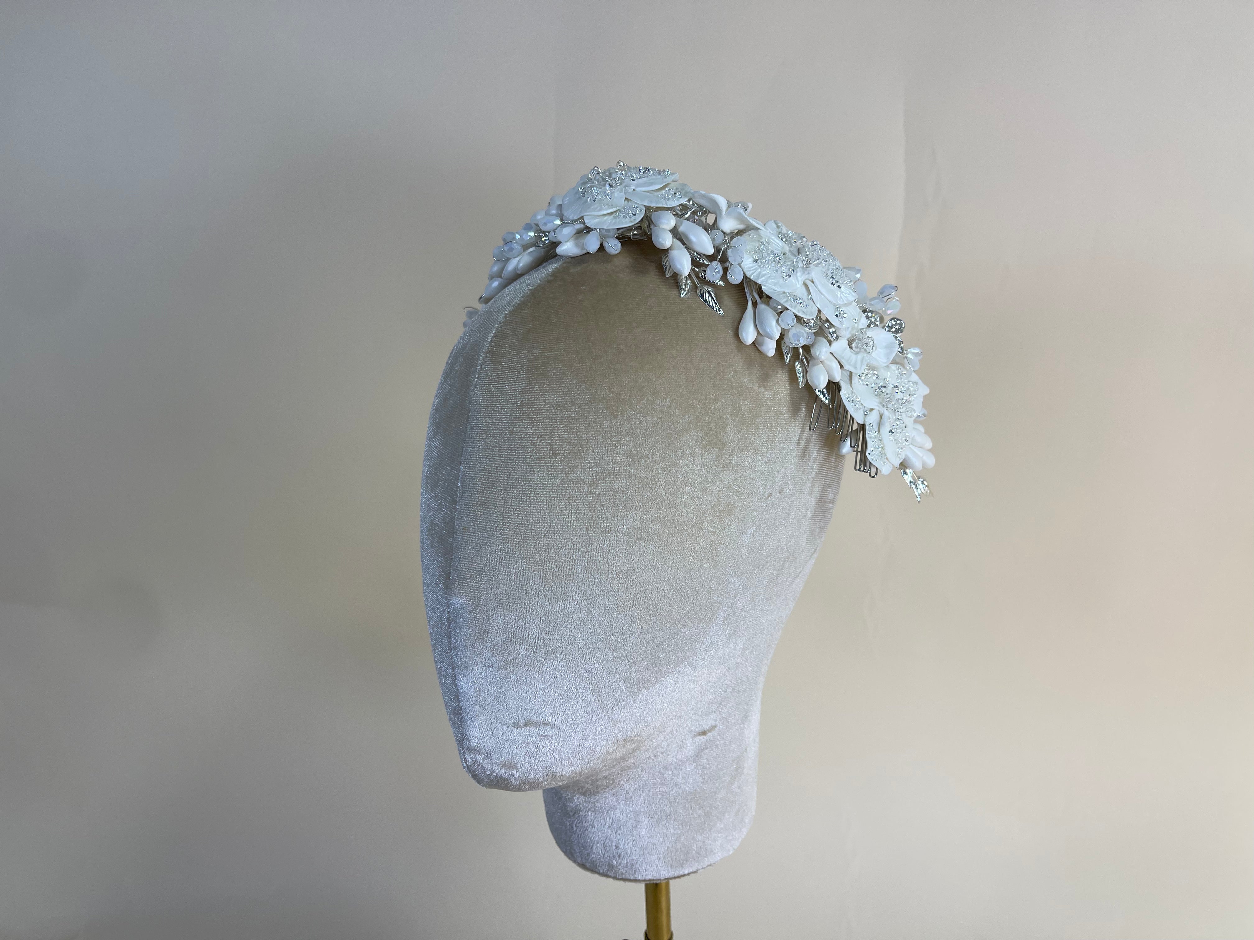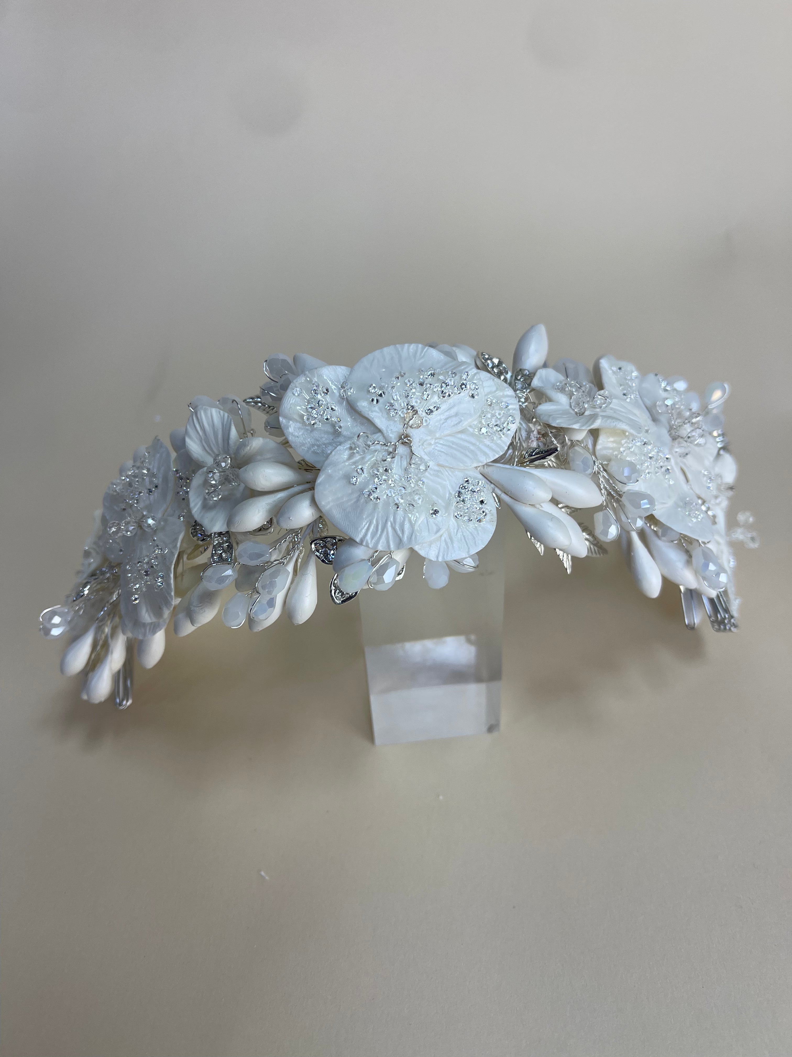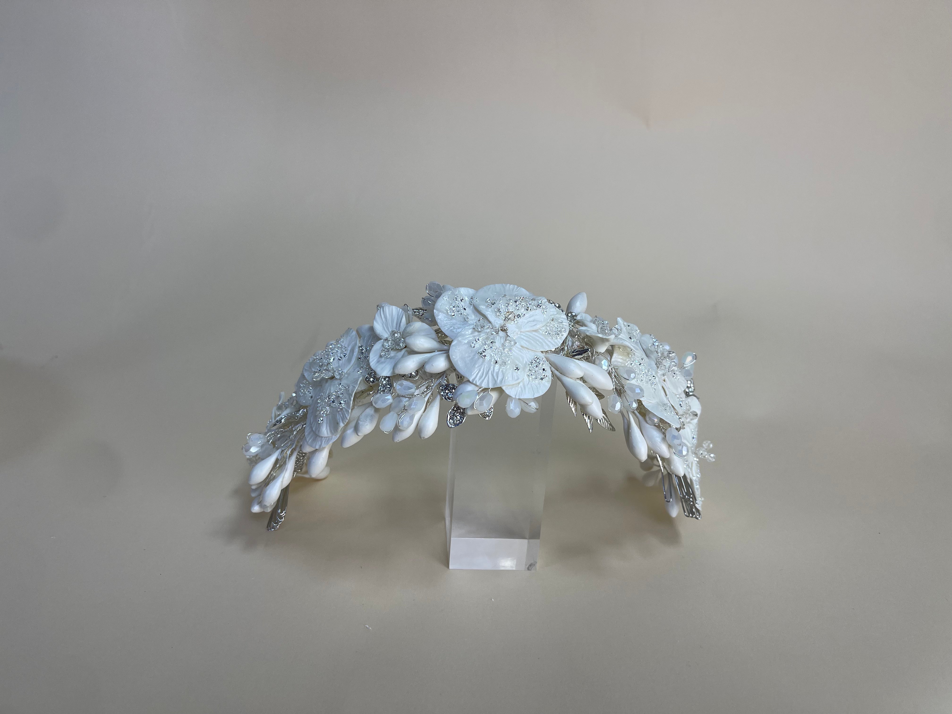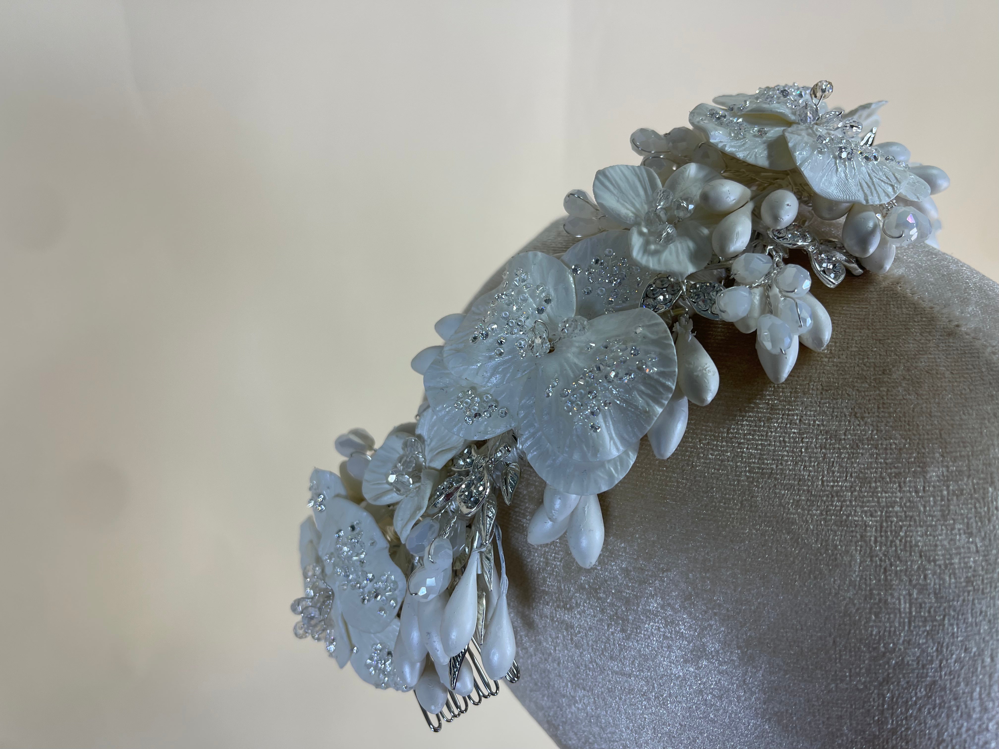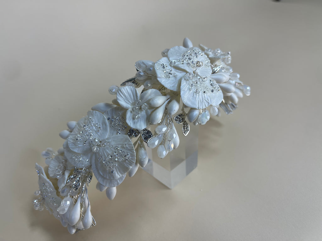 Set de orquídeas BLOVED-89 brinda un look romántico a las novias, están elaboradas en pasta francesa aperlada, con lluvia de cristales.