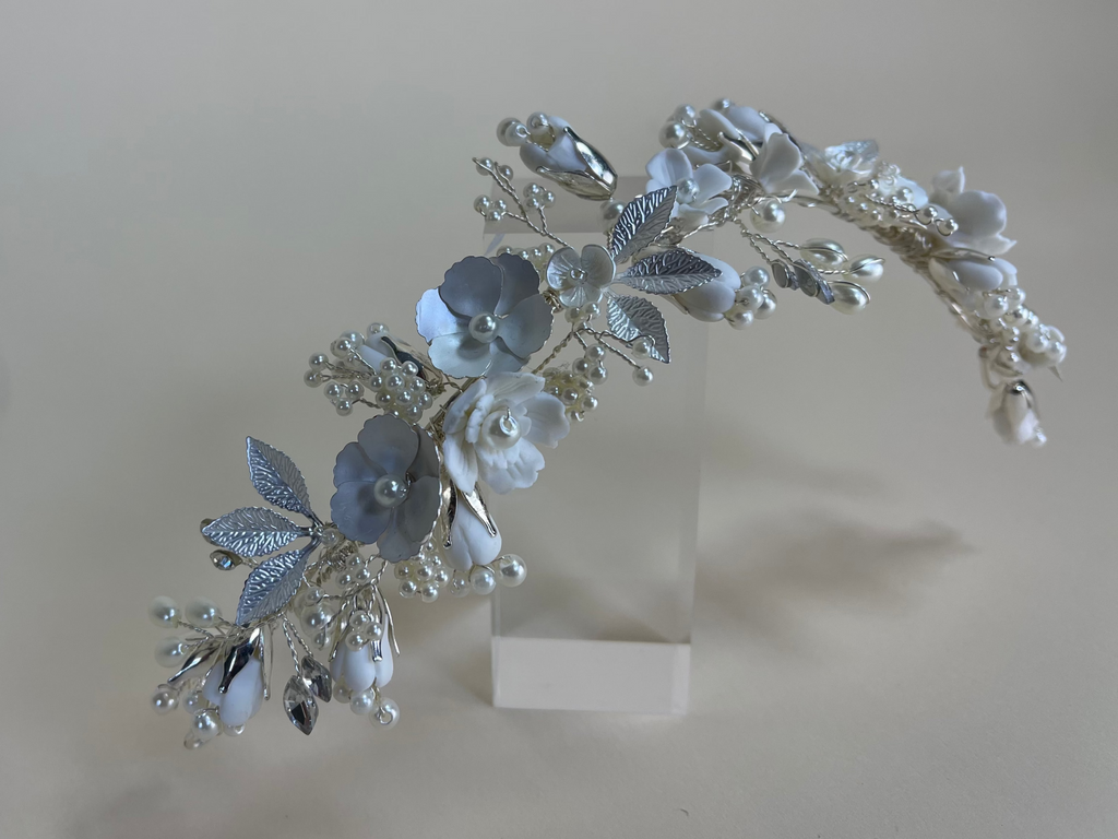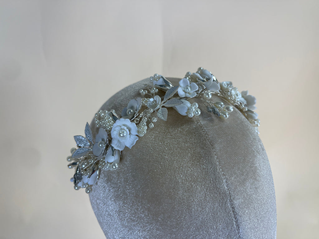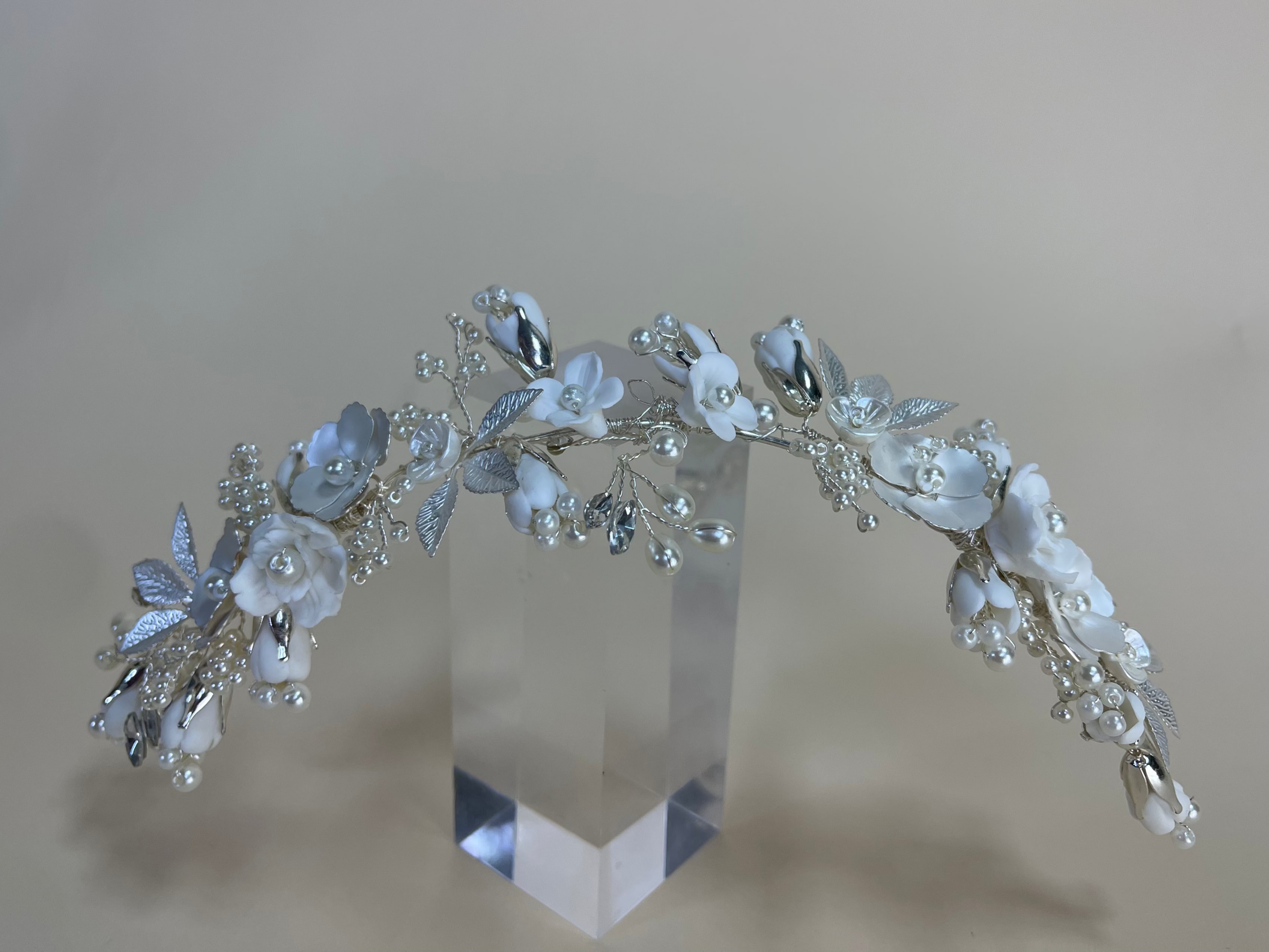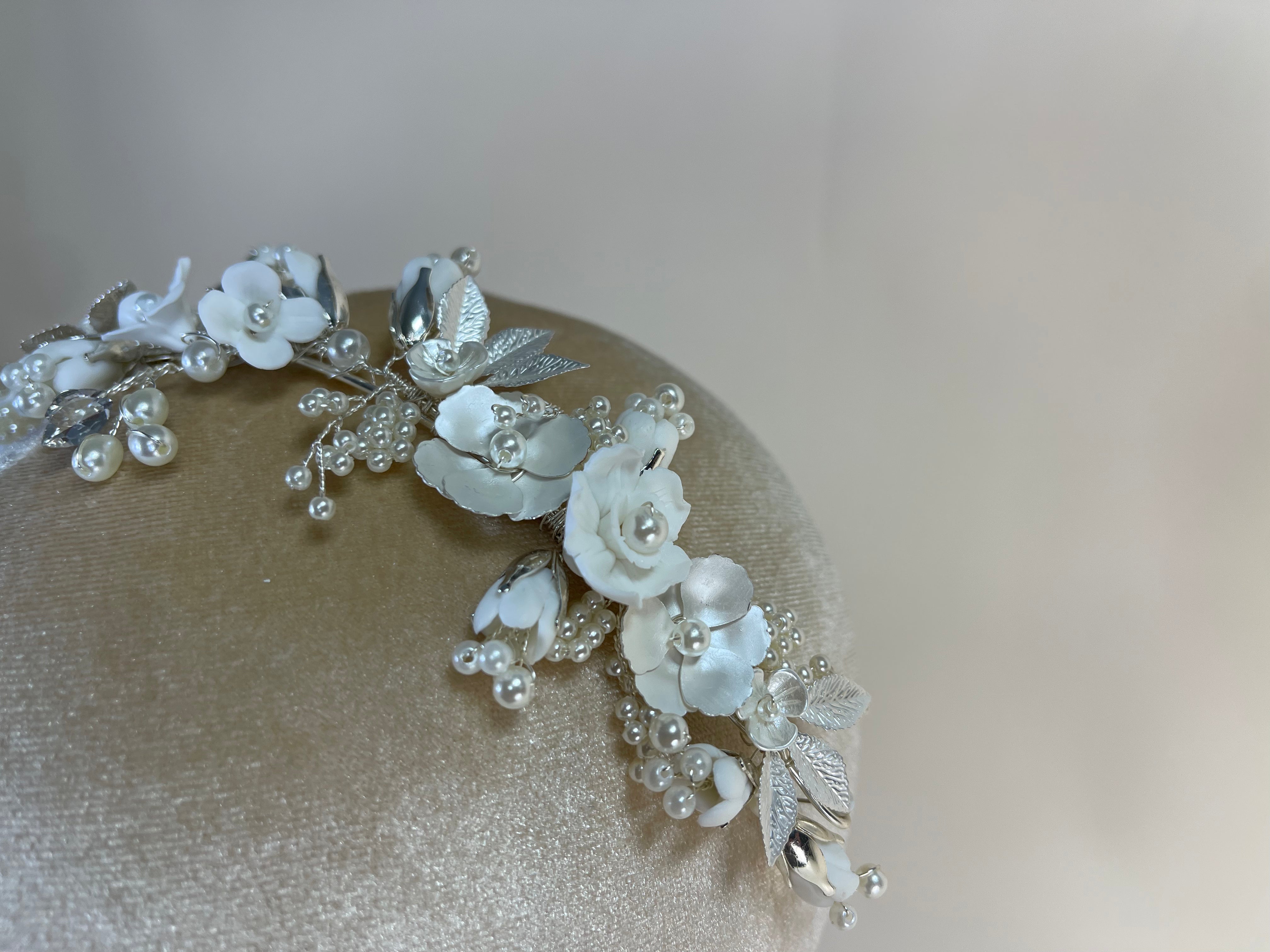 | MATERIAL | Baño plata, flores porcelana, perlas |