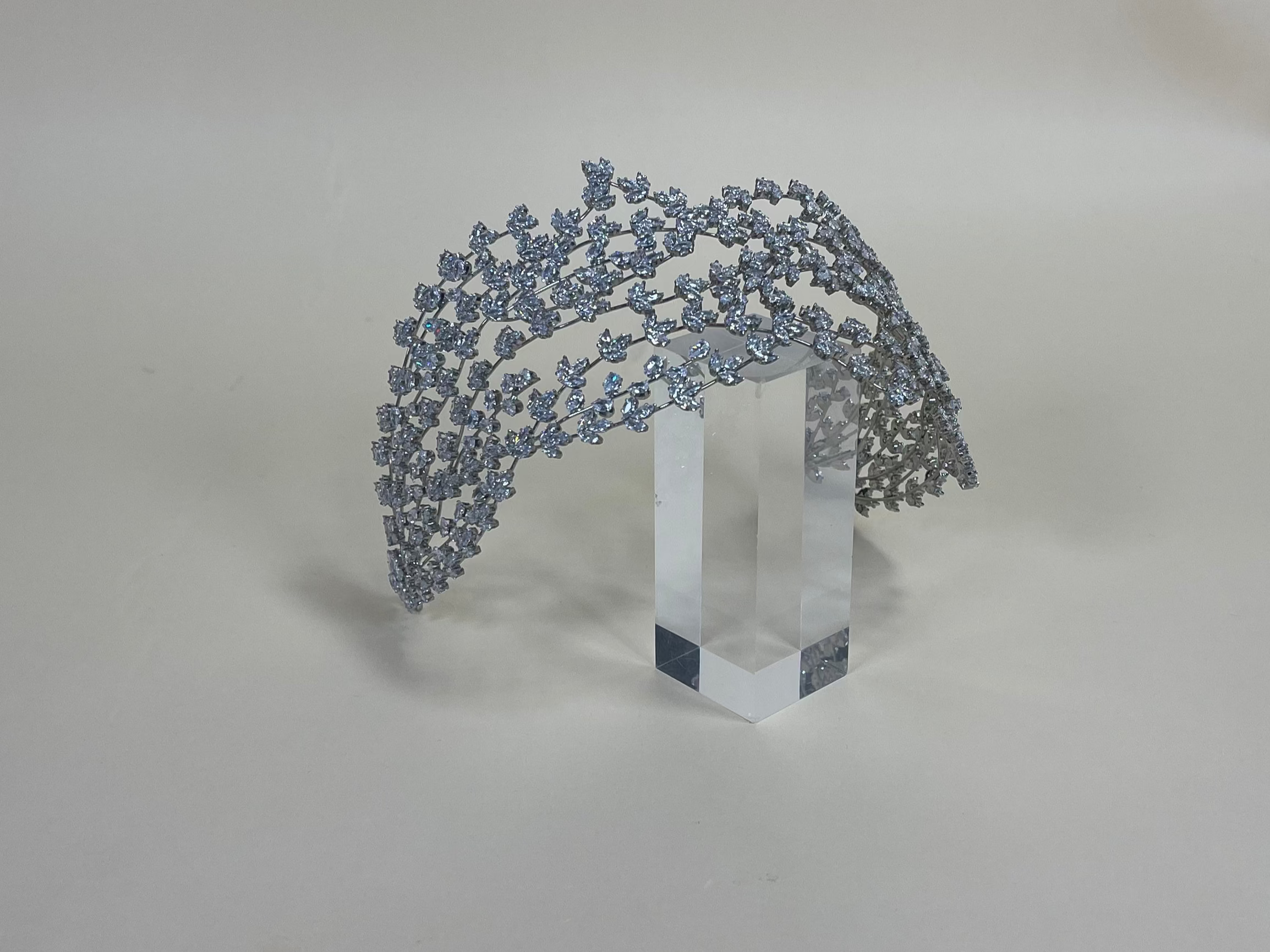 Disfruta del lujo con esta hermosa diadema joya, en baño plata con incrustaciones de cristal austriaco. Sin duda te brinda un look lleno de glamour y ensueño. Esta diadema estilo joya es todo lo que necesitas para brillar en tu Gran Día.